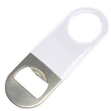Mini Bar Blade kapsylöppnare vit. En av de vanligaste kapsylöppnarna i restaurangmiljö. En platt skiva med öppnare i ena änden och ett hål i andra. Hålet är till för att smidigt kunna plocka upp flaskor ur is. Mini Bar Blade finns i en mängd olika färger.