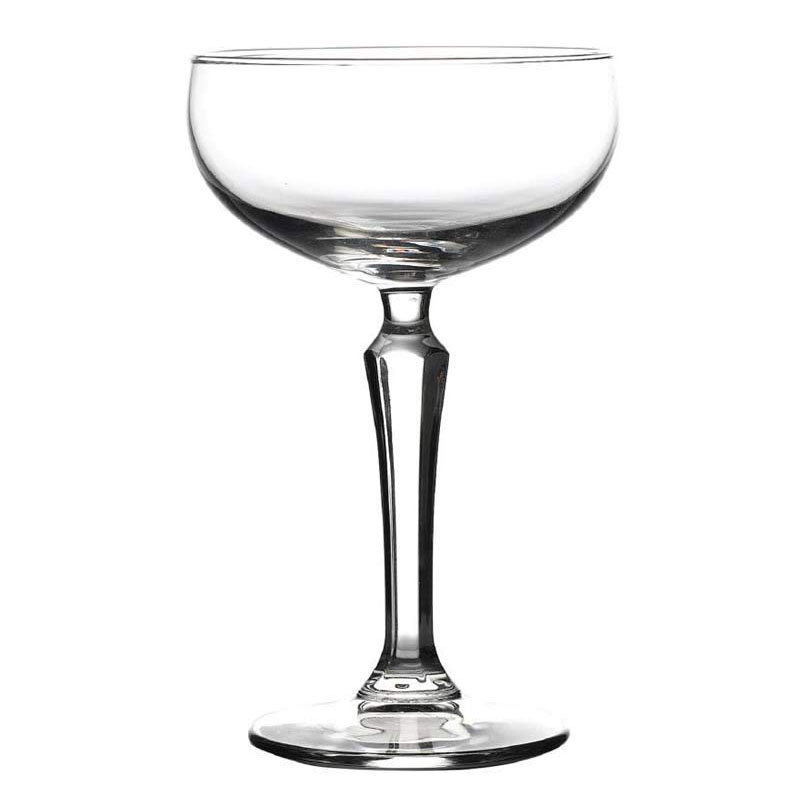 Speakeasy Coupe champagneglas 20 cl. Ett vackert, klassiskt balkongglas för champagne och cocktail designat i Art Deco stil. Speakeasy Coupe har en rund, skålformad kropp och en relativt hög fot som är sexkantiga slipad med en vacker profil.