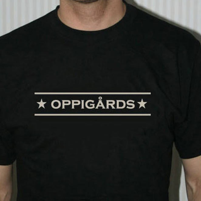 På bröstet finns ett tydligt tryck med Oppigårds, vilket ger t-shirten ett rent och autentiskt uttryck med koppling till det välkända bryggeriet.