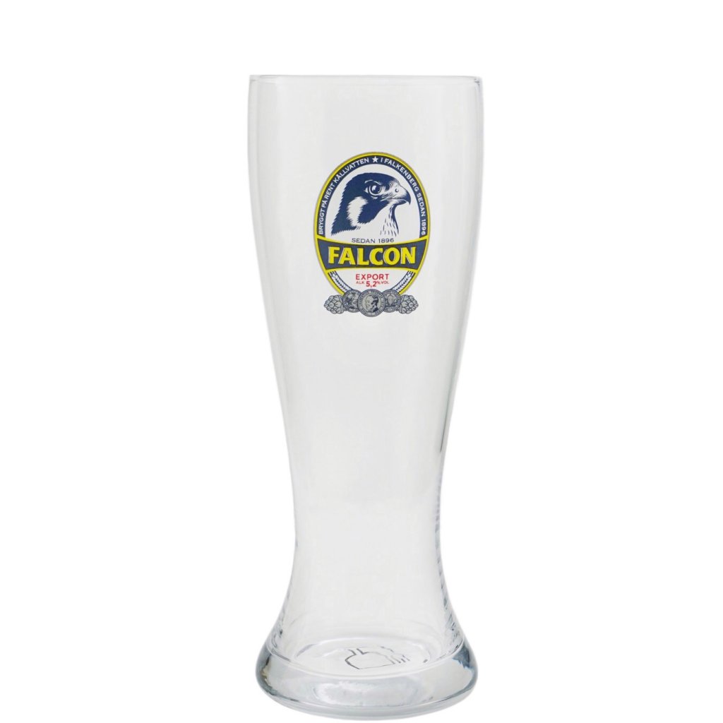 Falcon ölglas 50 cl. Ett av de klassiska svenska bryggerierna med anor från slutet av 1800-talet. Detta ölglas har en elegant svarvad form och en kraftig fot. På glasets framsida återfinns Falcons logga med den klassiska falken.