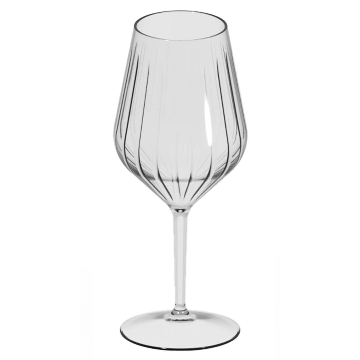 Kaleido vinglas 47 cl i slitstark Tritanplast är ett stilrent och mångsidigt glas från italienska Goldplast. Den eleganta designen med räfflad, lätt inbuktad kupa upptill ger ett exklusivt uttryck samtidigt som formen gör glaset välbalanserat och behagligt att hålla i.