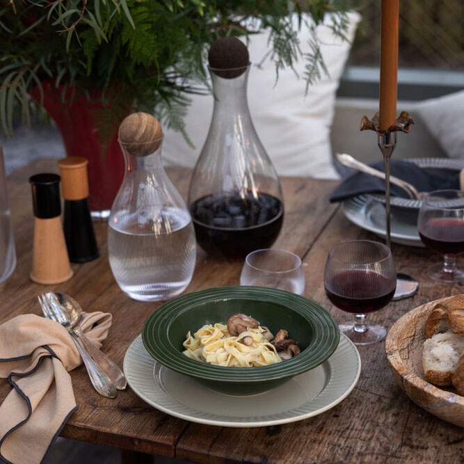 Blanka karaff är en stilren och mångsidig klassiker som passar lika bra till vardag som till fest. Den unika designen med karakteristiska ränder och mjukt formad bas gör den till ett elegant inslag i alla miljöer.